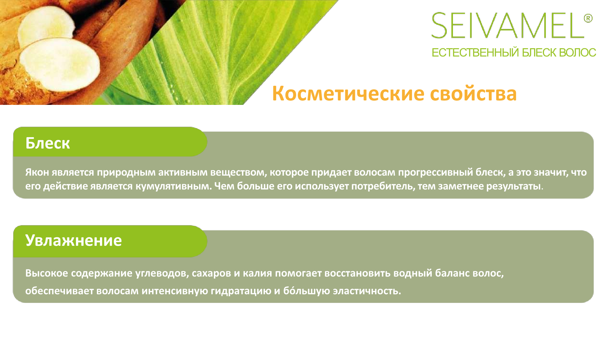 Seivamel Олигосахариды из корней Якона (Polymnia Sonchifolia) – натуральный актив для блеска и увлажнения волос